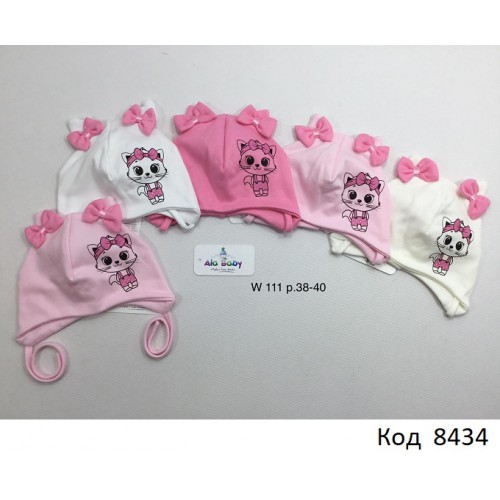 AlaBabyШапка трикотажна для дівчинки (на зав'язках) W-111 38-40 5 шт.