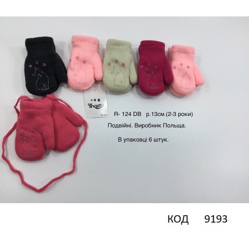 Snz дв.Рукавиці для дівчинки в'язані R-124 DB Акрил/махра "Котики" розмір 13, 6 шт