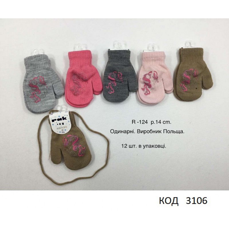 PAK од.Рукавиці для дівчинки в'язані R-124 G Акрил "ПОНІ" розмір 14, 12(6) шт
