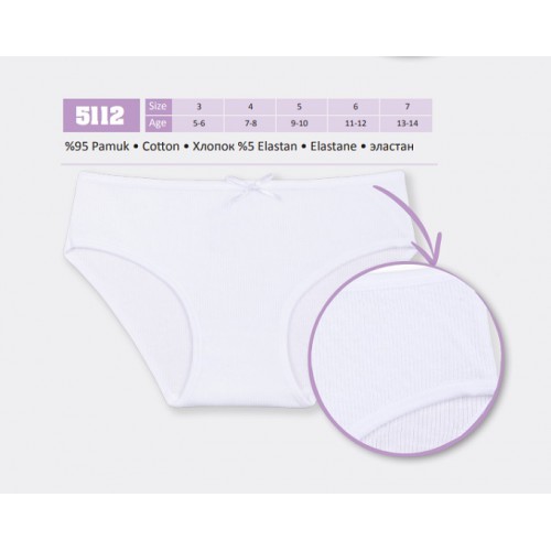 BR Труси для дівчинки 5112.01 БІЛИЙ РУБЧИК  06.07   12 (6)шт