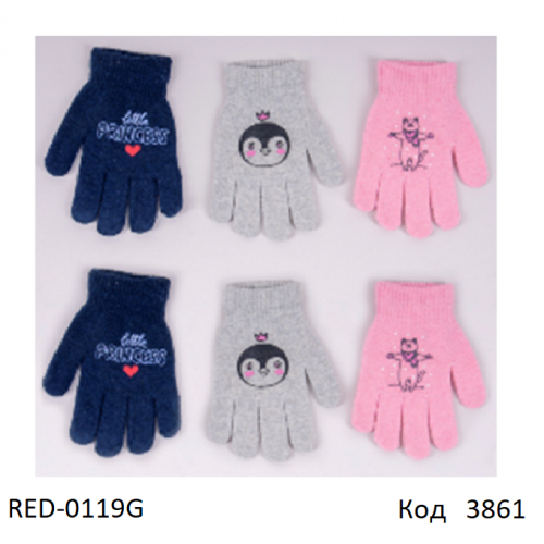 YO од.Перчатки для дівчинки в'язані RED-0119G 5% шерстьABS 14 розмір 6шт