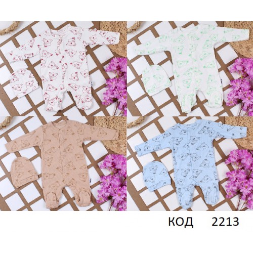 Tr Комбінезон інтерлок рубчик УНІ BEBİO 5018 "Коала" пряма застібка 62,68, 4шт