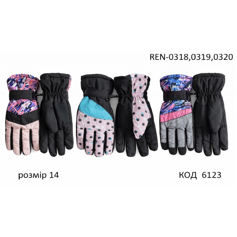 YO Перчатки для дівчинки плащівка 14/REN-0318,0319,0320 розмір14 3шт