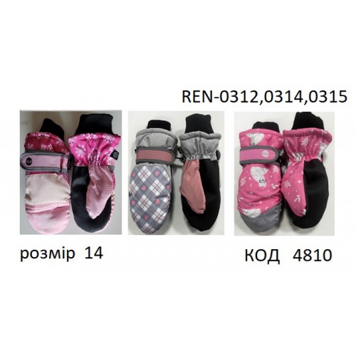 YO Рукавиці для дівчинки плащівка 14/REN-0312,0314,0315 розмір 14 3 шт