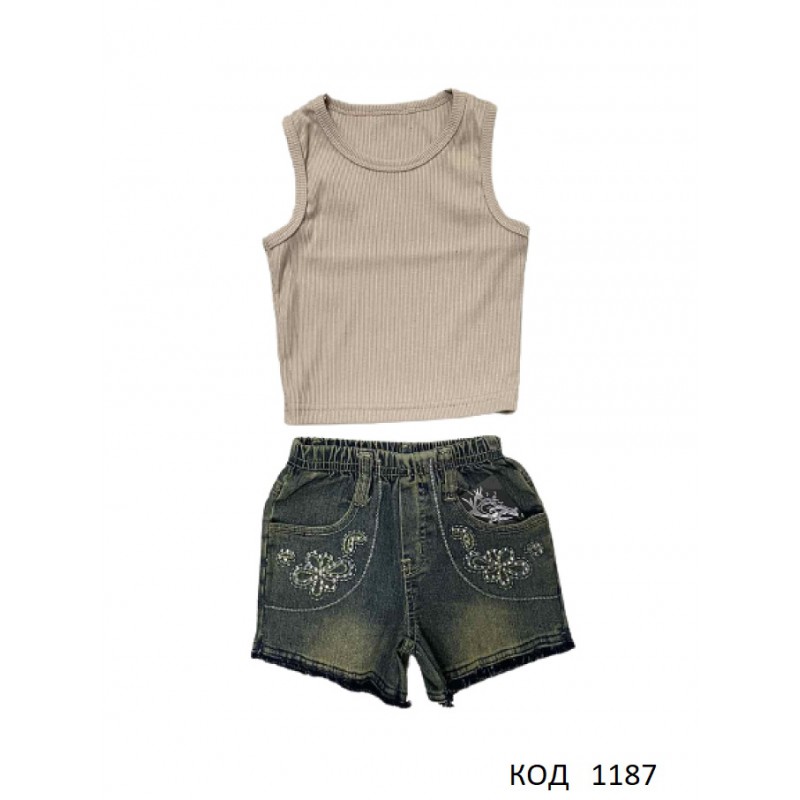 Ukr Коcтюм для дівчинки(Топ+шорти джинс) 98-110 3шт.