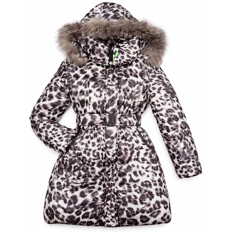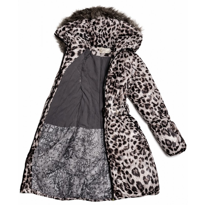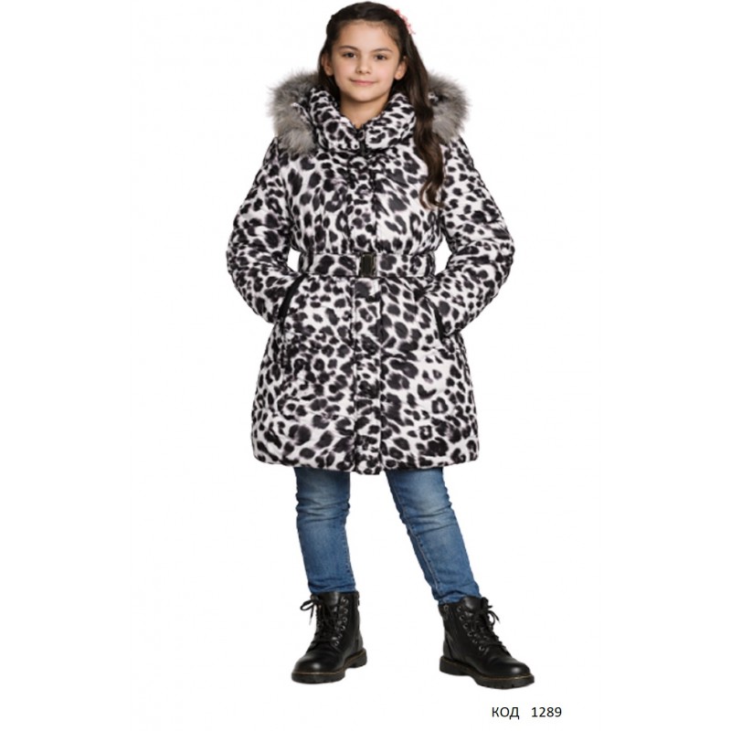 Ch Пальто зимове для дівчинки синтапон на флісі Moonbox 2227 140-158 леопард молочний 4(1)шт