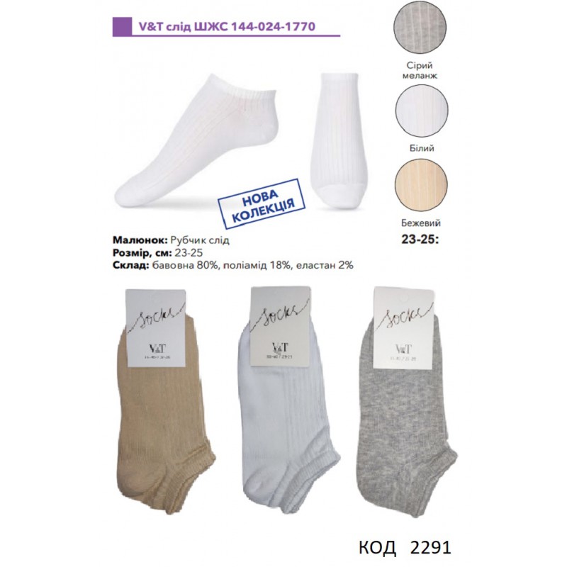 V&T Шкарпетки бавовняні жіночі короткі ШЖС 144-024-1770 23-25 Мікс 12(3)шт