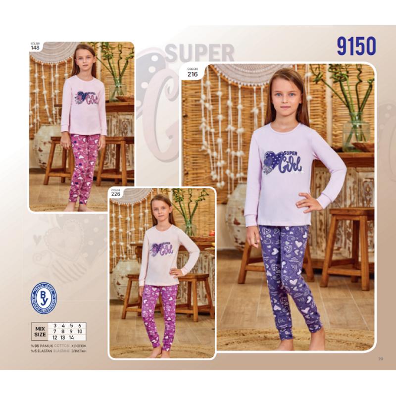 BR Піжама для дівчинки 12,13,14 стрейч/бавовна 9150 12,13,14 3 шт.