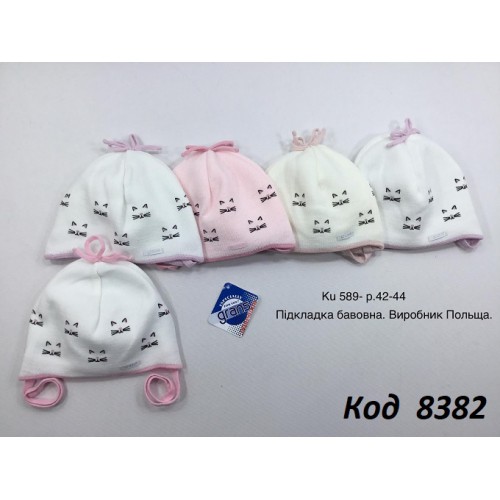 Grands Шапка в'язана на трикотажі для дівчинки (на завязках) Ku589 42-44 5 шт