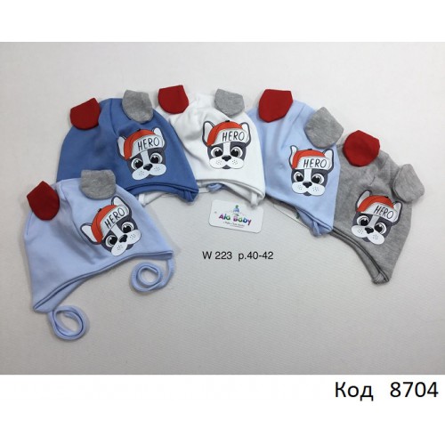 AlaBabyШапка трикотажна для хлопчика (на зав'язках) W-223 40-42 5 шт.
