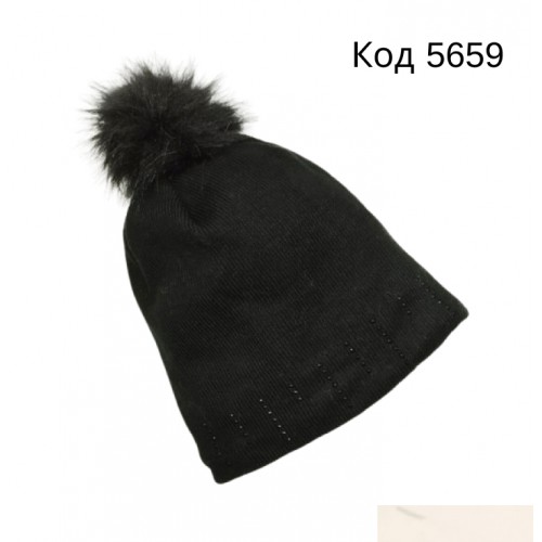 YO Шапка в'язана на флісі для дівчинки  Чорні стрази  54-56   5(1)шт