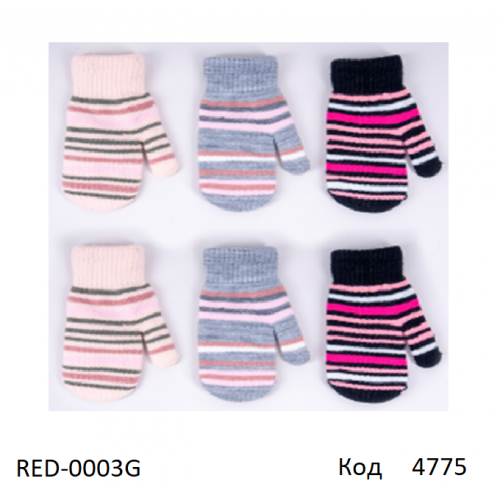 YO дв.Рукавиці для дівчинки в'язані подвійні RED-0003G Акрил/Махра.в СМУЖКУ розмір12,16,18 6шт