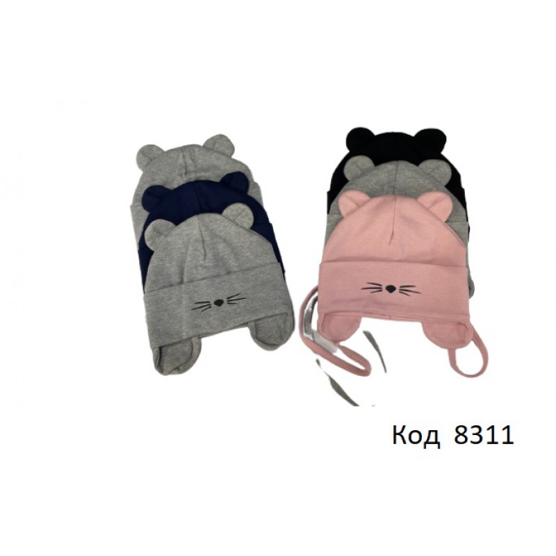 Ukr Шапка для дівчинки (на зав'язках) СТРЕЙЧ 46-48р. 3(4) шт