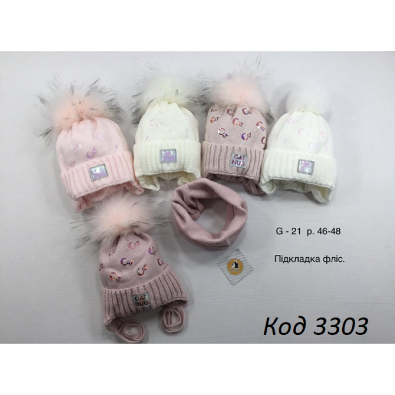 Ambra Шапка+хомут в'язана на флісі для дівчинки(на зав'язках) G-21 46-48 1(4)шт