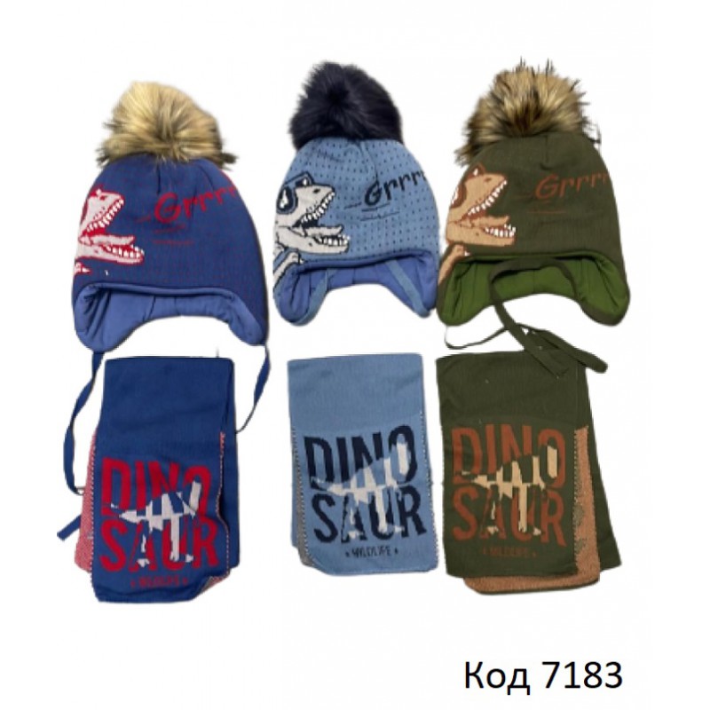 Ukr Шапка + шарф ІЗОСОФТ на трикотажі для хлопчика (на завязках) 52 1(3)шт