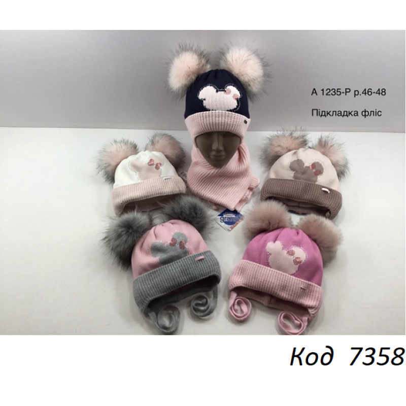 Grands Шапка+шарф в'язана на флісі для дівчинки (на зав'язках) А-1235 P 46-48 1(2) шт.