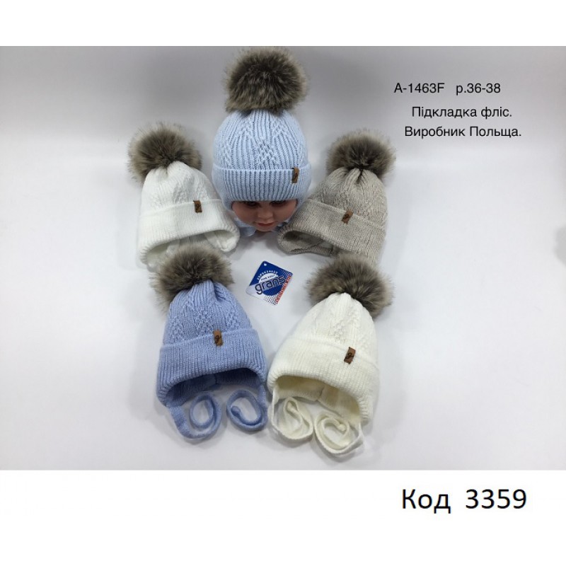 Grands Шапка в'язана на флісі для хлопчика (на зав'язках) А-1463 F 36-38 5 шт.