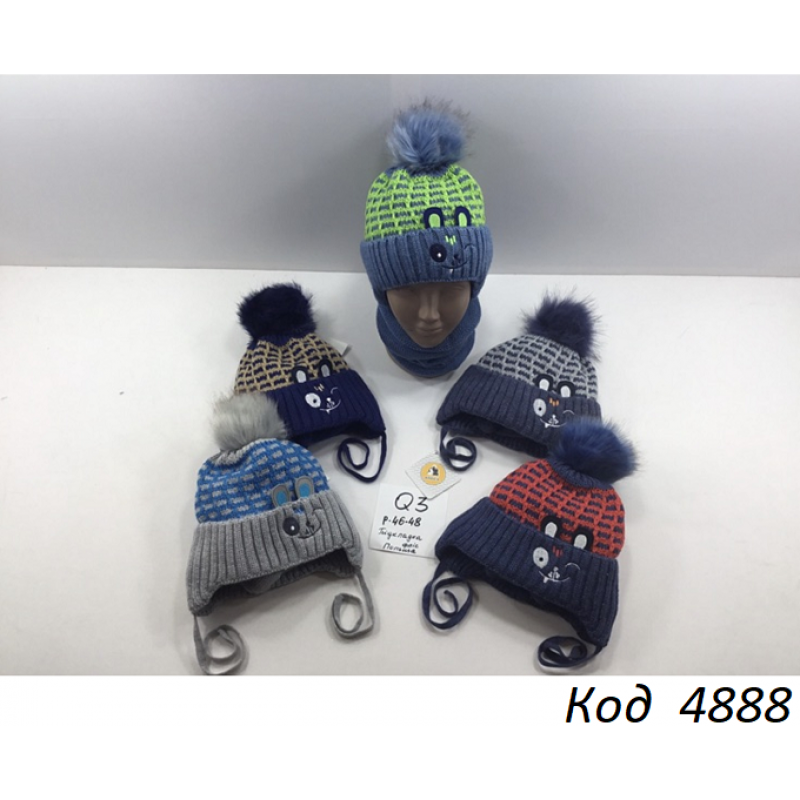 Ambra Шапка в'язана на флісі для хлопчика(на зав'язках) Q-3 46-48 5шт