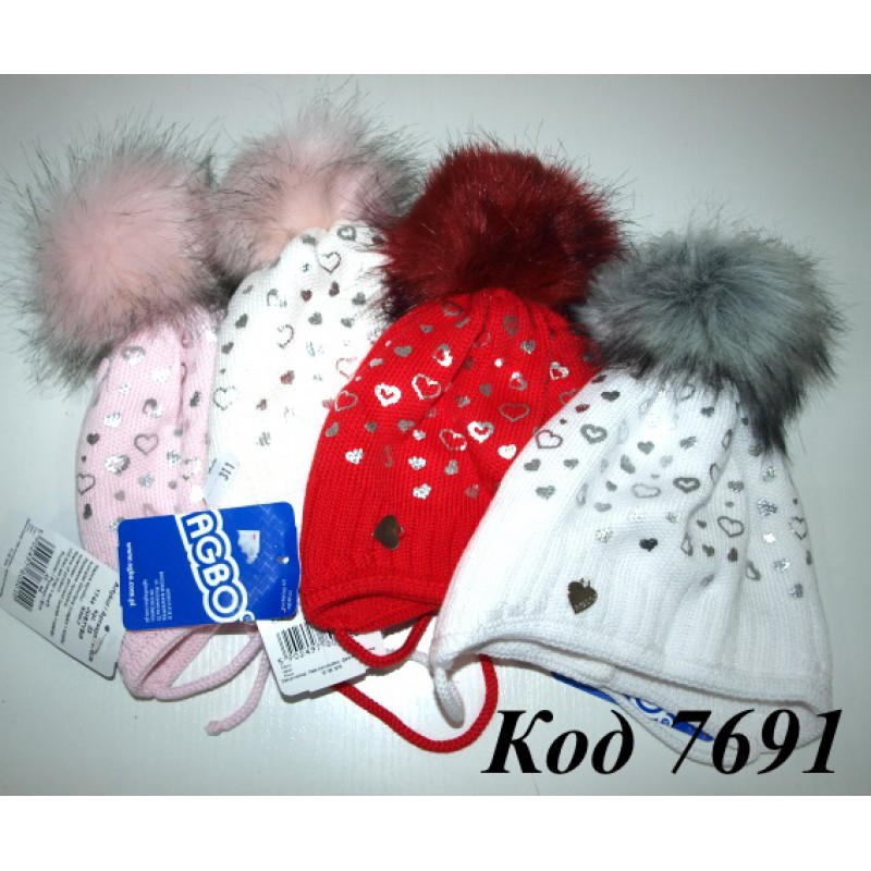 Agbo Шапка в'язана на флісі для дівчинки (на зав'язках) A-23-1744 42-44 5(4) шт