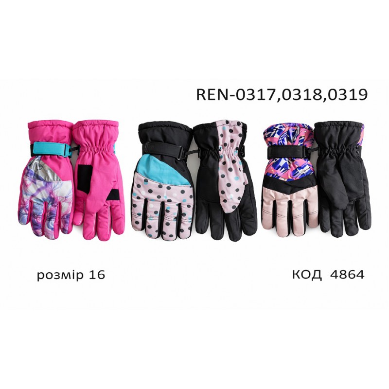 YO Перчатки для дівчинки плащівка 16/REN-0317,0318,0319 розмір16 3 шт