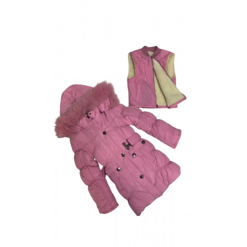 Ch Пальто зимове для дівчинки синтапон на флісі 2С-К (0152-0176)розовий 134-158 5(1) шт