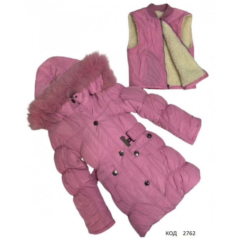Ch Пальто зимове для дівчинки синтапон на флісі 2С-К (0152-0176)розовий 134-158 5(1) шт