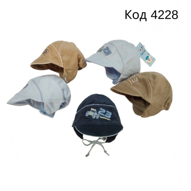 -- YO Шапка вельвет для хлопчика (на зав'язках) cda-364 Польща 50-52 10(5)шт