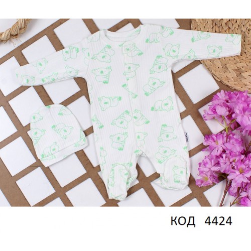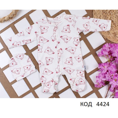 Tr Комбінезон інтерлок рубчик УНІ BEBİO 5018 "Коала" пряма застібка 3,6,9,12 4шт
