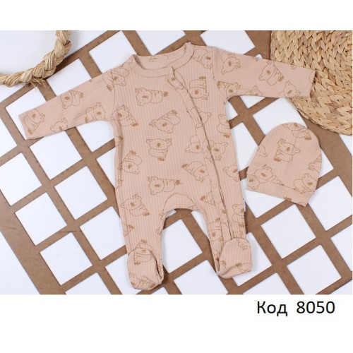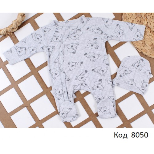 Tr Комбінезон інтерлок рубчик УНІ BEBİO 5020 "Панди"скошена застібка 3,6,9,12 4шт