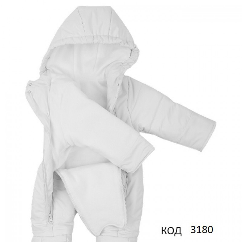 ЛяЛя Комбінезон плащівка (синтепух 200г/кв.м) УНІ 8ПЛ084 (3-12) БІЛИЙ 62,68,74 1 шт.