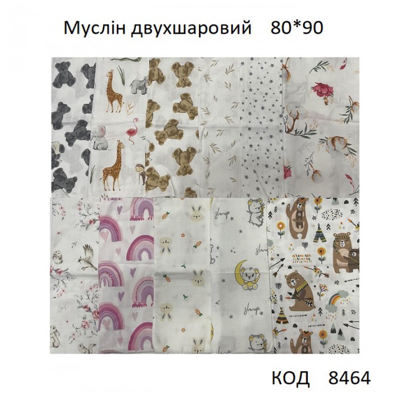 Ukr Пелюшка МУСЛІН двошаровий мікс 80х90 см. 5шт