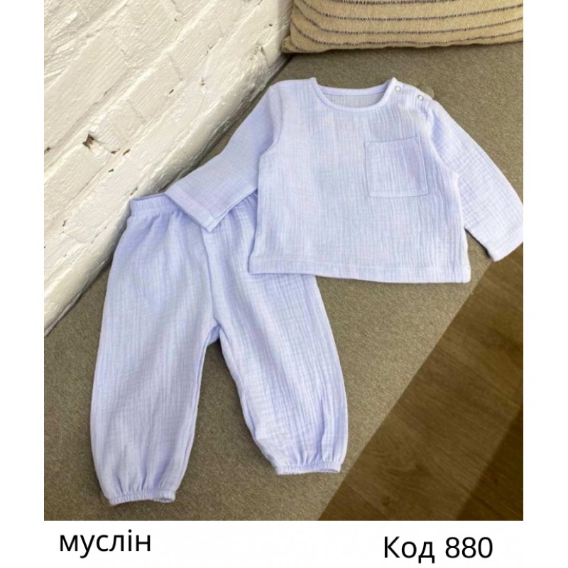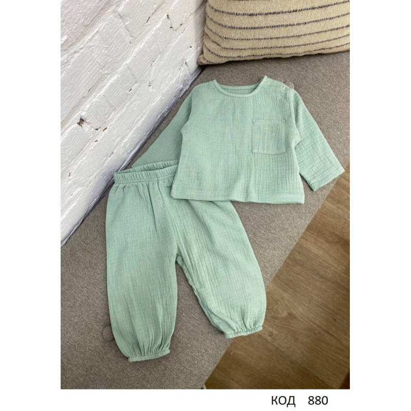 ББ Костюм (Сорочечка + штани) МУСЛІН ОДНОТОН 68,74,80,86 4шт