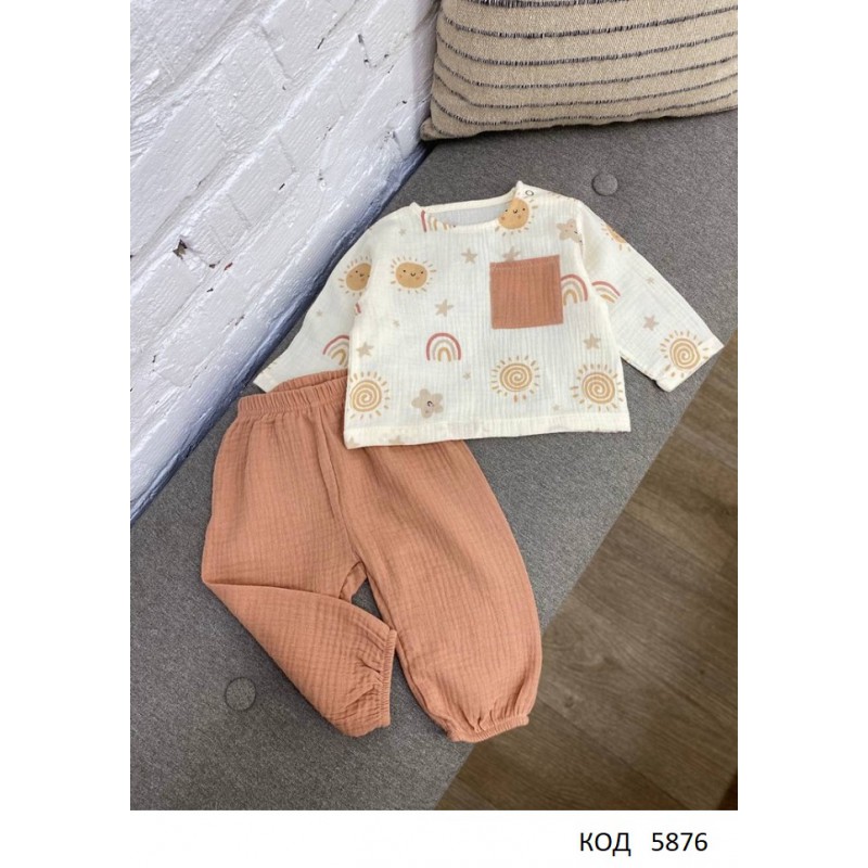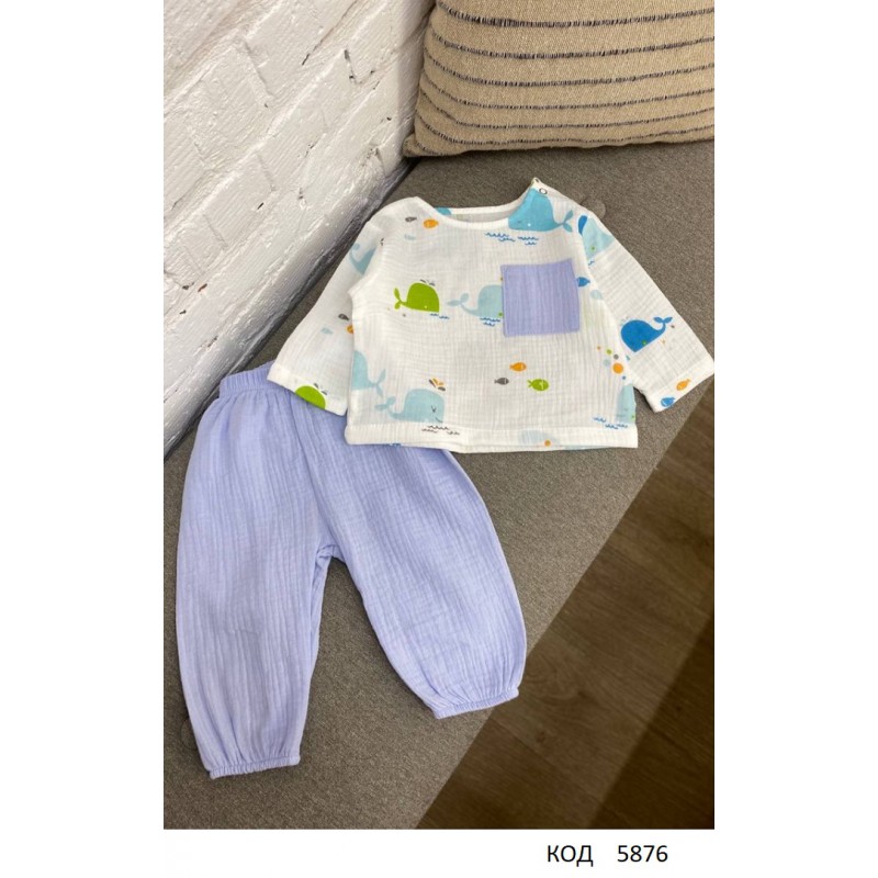 ББ Костюм (Сорочечка + штани) для хлопчика МУСЛІН малюнок 68,74,80,86 4 шт