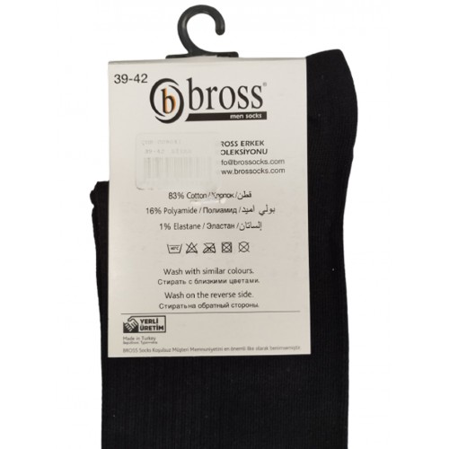 Bross Шкарпетки бавовняні чоловічі 8041 без резинки Чорний 39-42/43-45 12(3)шт.