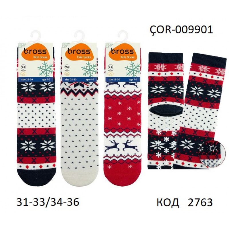 Bross Шкарпетки махрові дитячі УНІ ABS ОЛЕНІ ÇOR-009901 МІКС 12(3) шт.