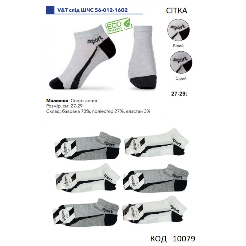 V&T Шкарпетки бавовняні чоловічі короткі СІТКА ШЧС 56-012-1602 27-29 Мікс 12(3)шт