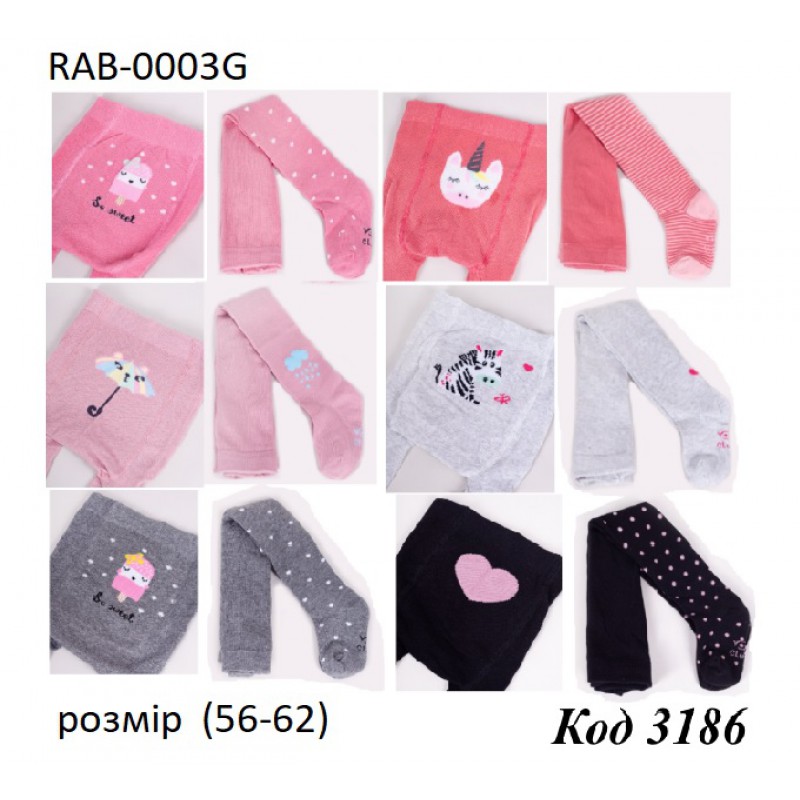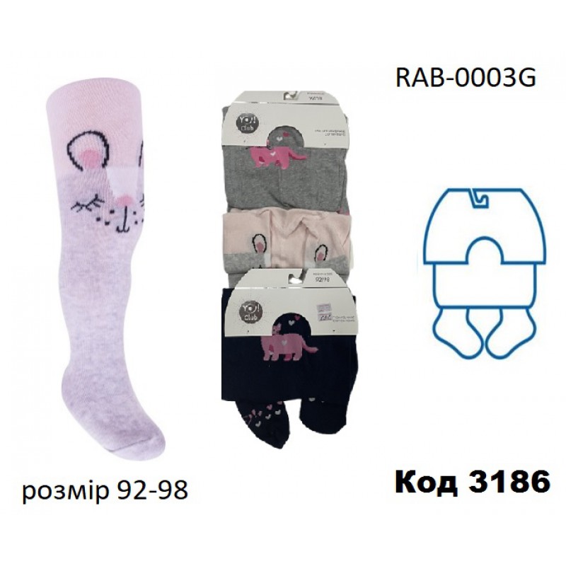 YO Колготки бавовняні для дівчинки RAB-0003G МАЛЮНОК 56-62,68-74,80-86, 92-98 6(3) шт