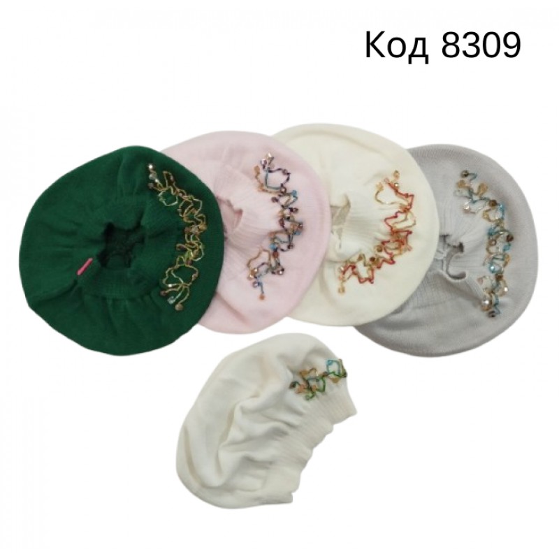 ."Нікола"Берет в'язаний для дівчинки 15V7 бісер (р.8/9років) 5шт