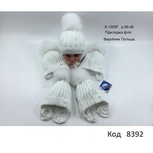 Grands  Шапка в'язана на флісі для дівчинки (на зав'язках) A-1300 F   36-38  Білий 5 шт