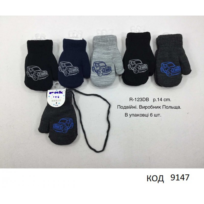 PAK дв.Рукавиці для хлопчика в'язані R-123 DB Акрил/махра "АВТО" розмір 14, 6 шт