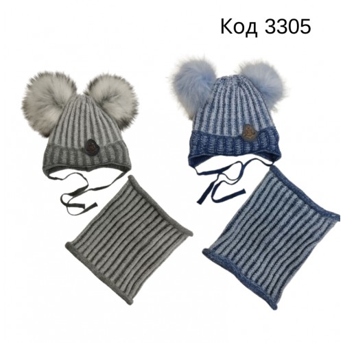 Ambra Шапка+хомут в'язана на ізософті для хлопчика(на зав'язках) Z-24(3301) 48-50 1 шт.