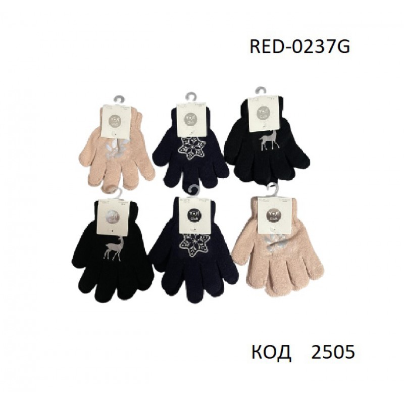 YO од.Перчатки для дівчинки в'язані RED-0237G Акрил світловідбив. принт розмір 14,16,18 6 шт