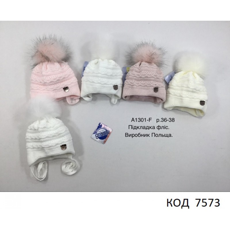 Grands Шапка в'язана на флісі для дівчинки (на зав'язках) A-1301 F 36-38 5 шт