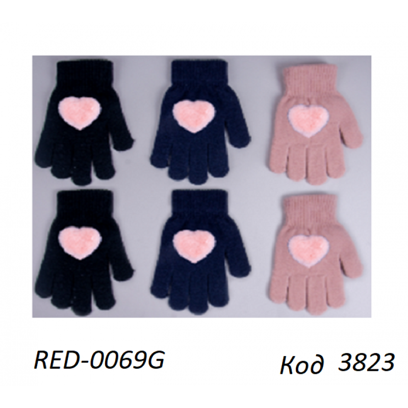 YO од.Перчатки для дівчинки в'язані RED-0069G Акрил Сердечко Хутро 18 6 шт