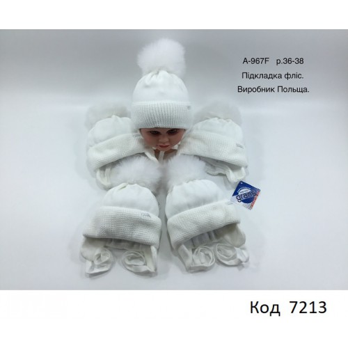 Grands Шапка в'язана на флісі для дівчинки (на зав'язках) A-967 F 36-38 Білий 5(1) шт