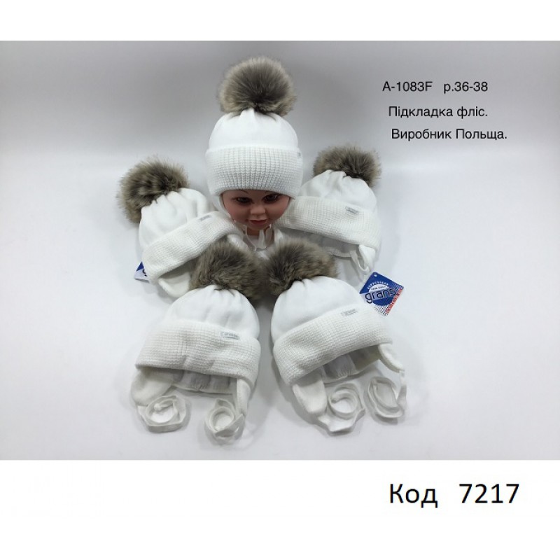 Grands  Шапка в'язана на флісі для хлопчика (на зав'язках) А-1083 F  36-38  БІЛИЙ 5 шт.