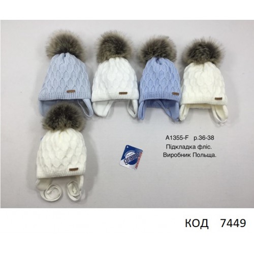 Grands  Шапка в'язана на флісі для хлопчика (на зав'язках) А-1355 F  38-40  5 шт.