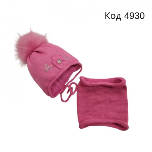 Ambra  Шапка+хомут в'язана на ізософті для дівчинки (на зав'язках) 46-48  1 шт.