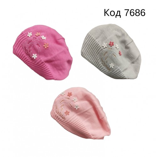 ."Берет в'язаний для дівчинки "Квіти" 50-52 3шт