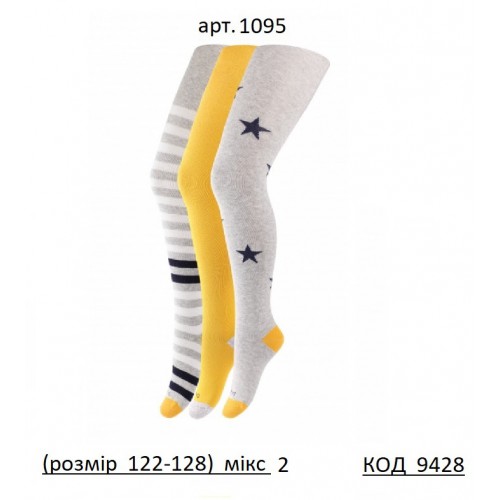 DUNA Колготки бавовняні дитячі МАЛЮНОК 122-128 МІКС кольорів 3шт